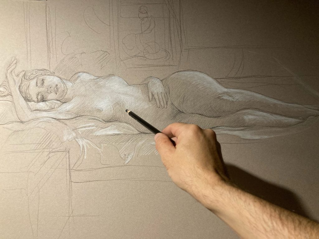 Pour ceux qui souhaitent transformer l’éphémère en une œuvre immortelle, l’expérience se prolonge. Le dessin réalisé sur le vif devient le point de départ d’une peinture à l’huile sur toile.