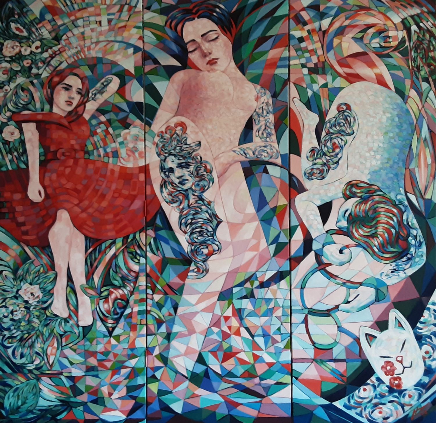 Chanson d’après-midi Peinture à l’huile sur toile 90x90cm 2022