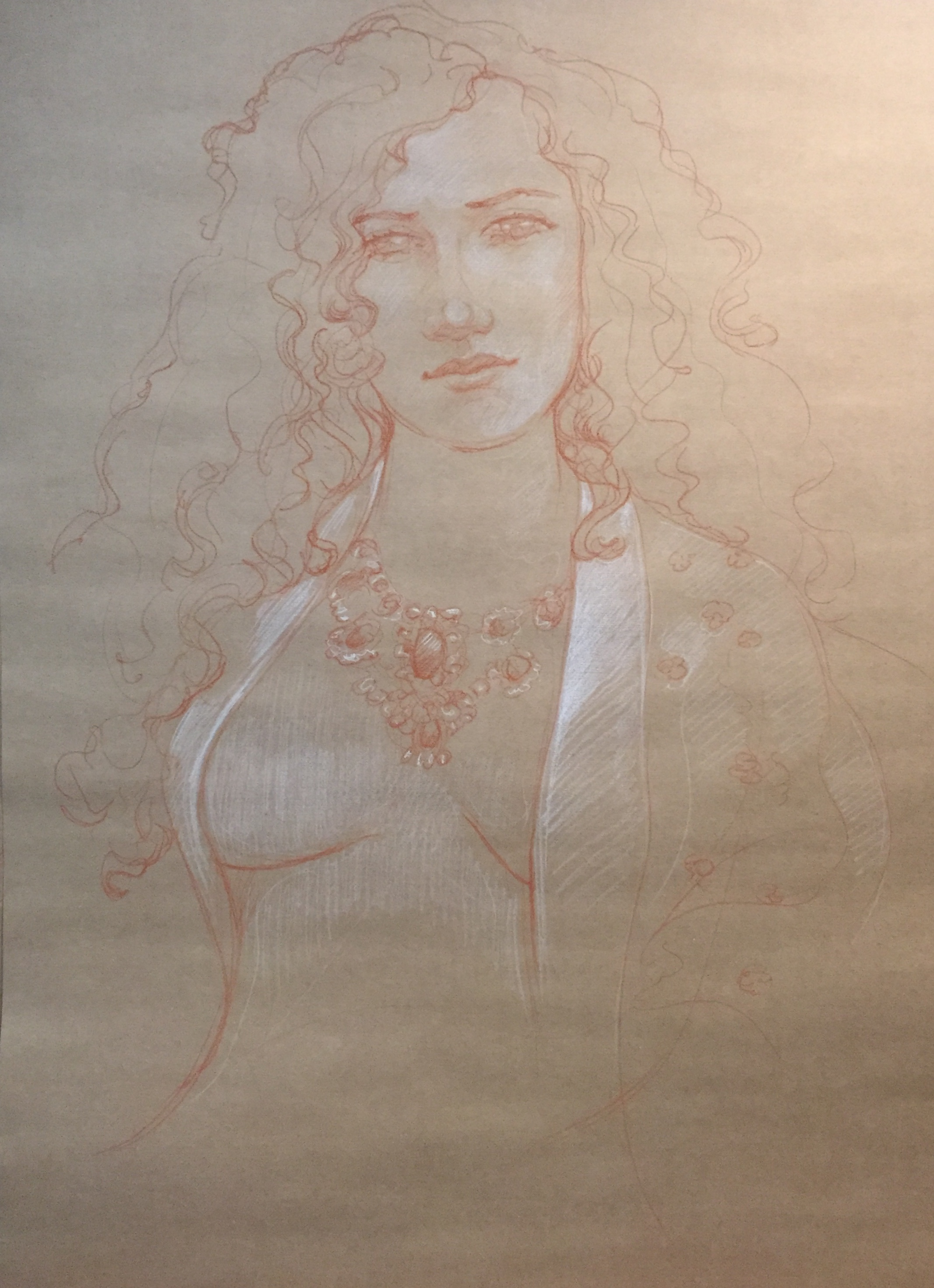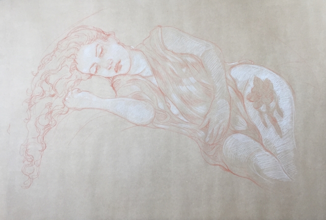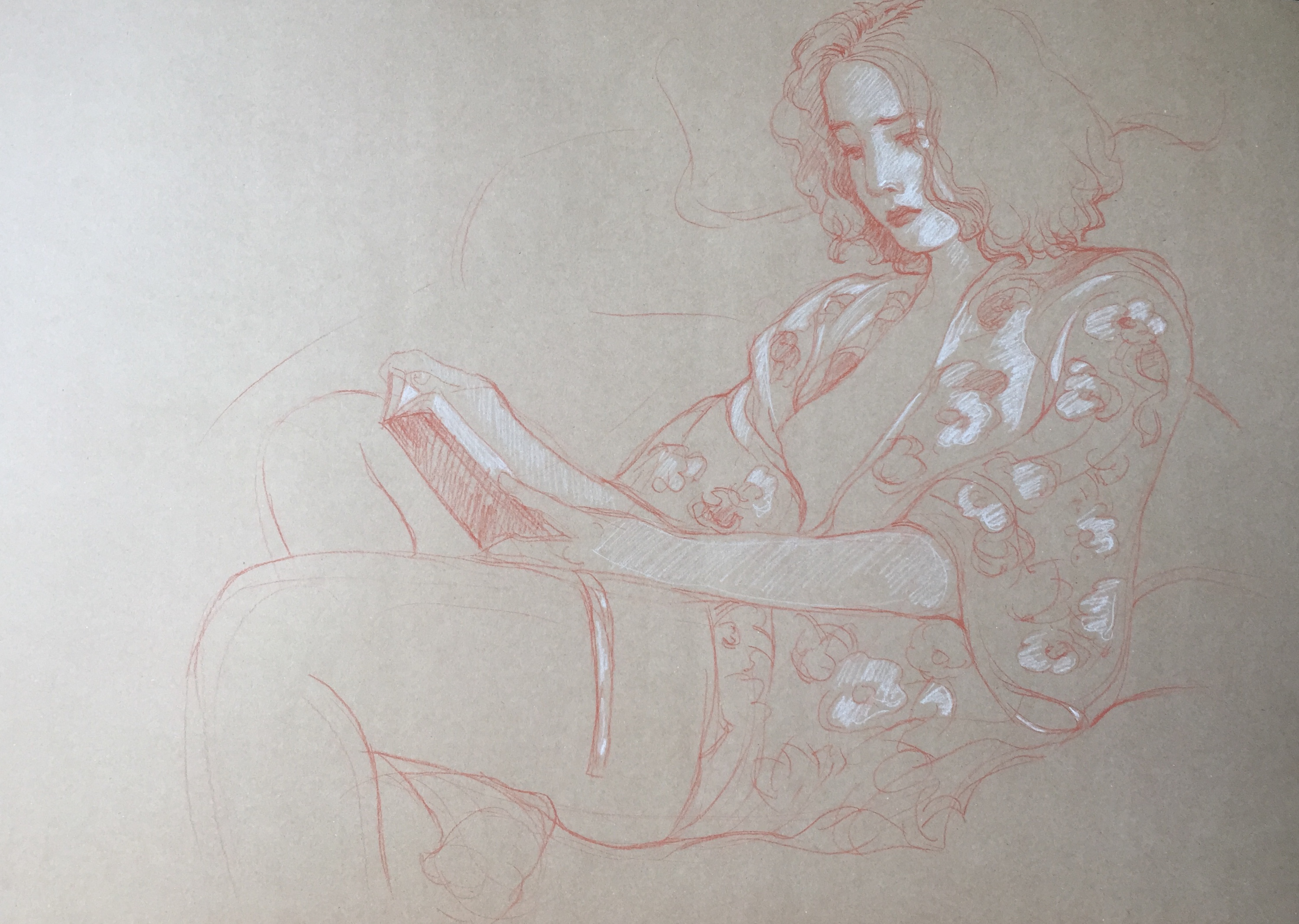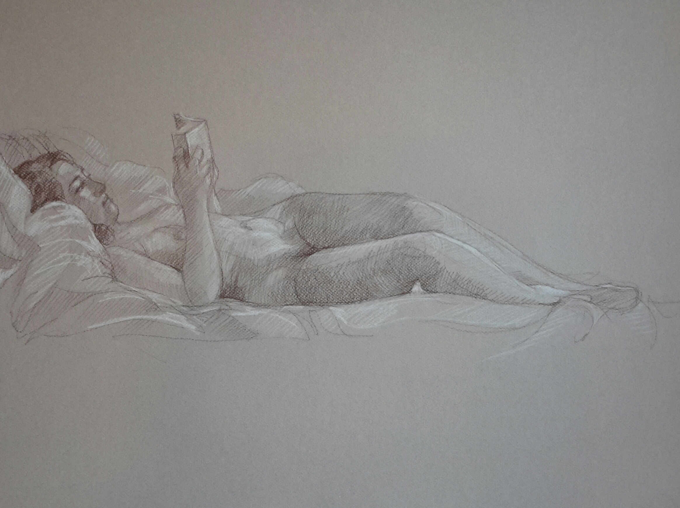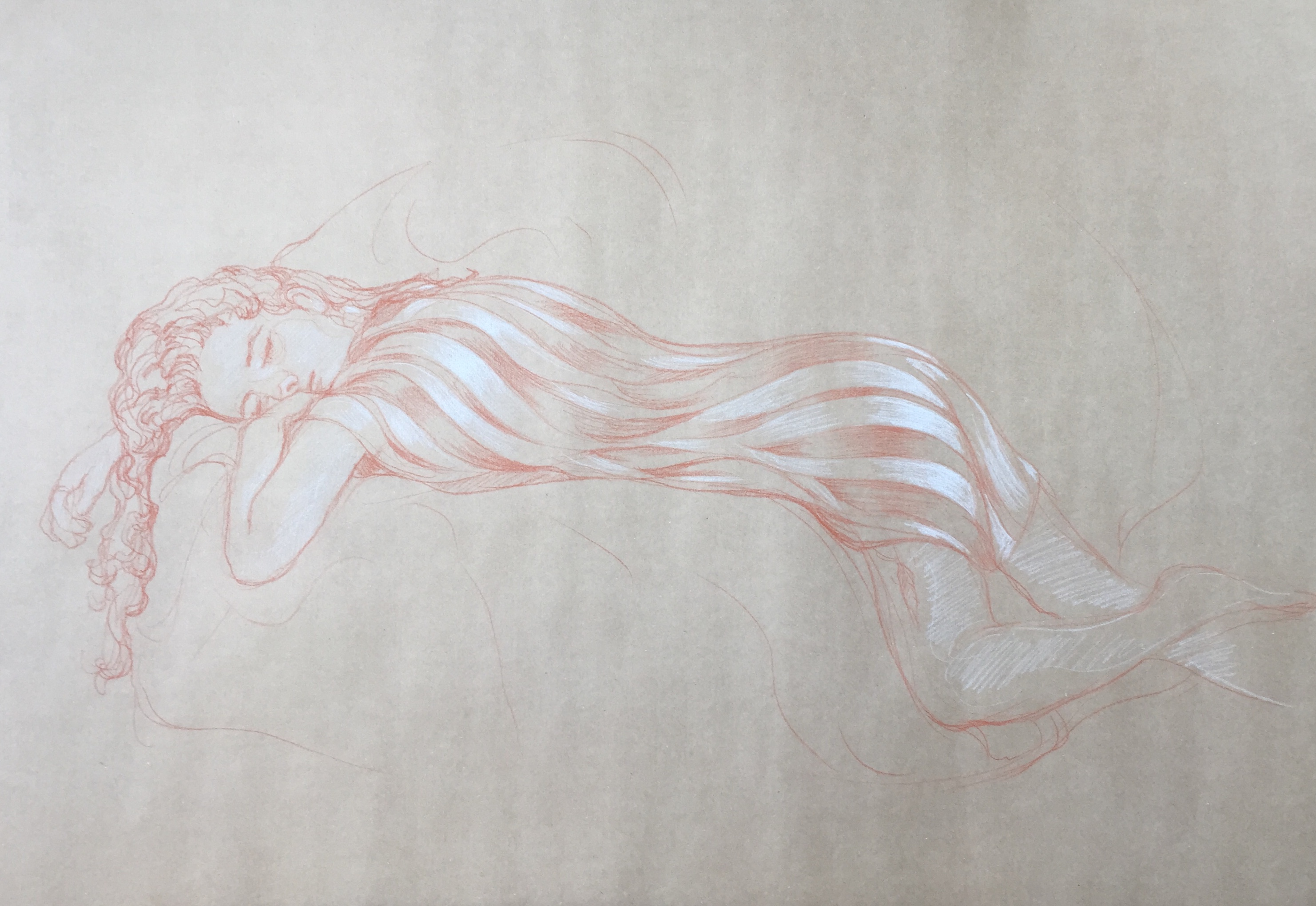 Nu feminin : sépia, sanguine et crayon blanc,format raisin (50x65cm), pose 45 min