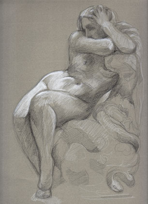 Ce marbre fut, avec les Romains de la décadence de Thomas Couture, l’oeuvre la plus commentée du Salon de 1847, faisant l’objet d’un double scandale, artistique et mondain. Pour cette image suggestive d’une femme nue se tordant sous la piqûre d’un serpent symbolique enroulé autour de son poignet, Clésinger, comme en témoigne la cellulite du haut des cuisses et retranscrite dans le marbre, avait utilisé un moulage sur nature du corps d’une demi-mondaine, Apollonie Sabatier (1822-1890). Muse de Baudelaire, beauté parisienne tenant un salon, celle que ses amis appelaient « la Présidente » offrit ainsi un succès inespéré à Clésinger.